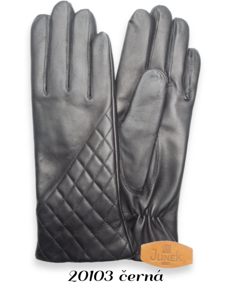 Elegantní dámská rukavice,vyrobena z jemné jehněčí kůže.Na vrchní části rukavice jsou vyšité kosočtverce,které malinko vytupují. Pod palcem je gumička,tím rukavice lépe přiléhá k ruce.Podšívka 100% vlna.