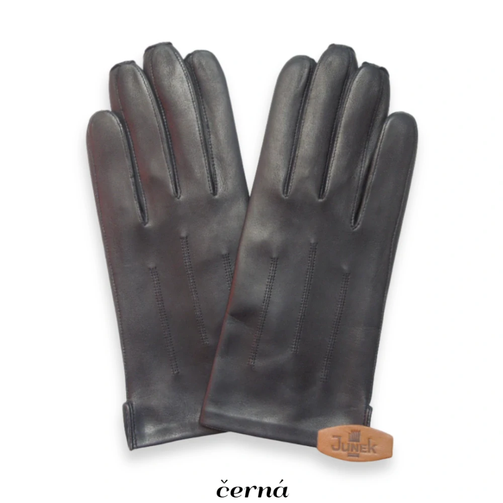 Pánské rukavice bez podšívky z jemné jehněčí kůže. Strojní vyšívkana na vrchu rukavice,rozparek na straně rukavice.